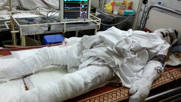 Cùng nằm trong phòng cấp cứu với anh Y là nạn nhân Doãn Văn Hùng (43 tuổi cũng ở Phúc Thọ). Anh Hùng bỏng nặng hơn, tuy đã qua khỏi cơn nguy kịch, có thể nói chuyện nhưng vẫn chưa thể ăn được.