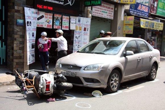 Tại hiện trường, hai chiếc xe máy bị hư hỏng nặng, hai chiếc ô tô bị móp đầu. Ngay sau đó, cảnh sát giao thông quận 11 đã có mặt phong tỏa làn đường để xử lý vụ việc.