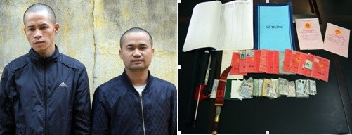 Các đối tượng Duy, Phúc và tang vật thu giữ