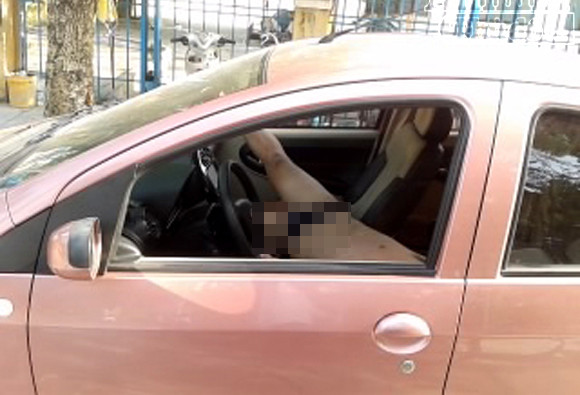 Sau ít phút nằm dưới vỉa hè, người thanh niên leo lên xe nằm gác chân lên cửa kính, ngủ tiếp