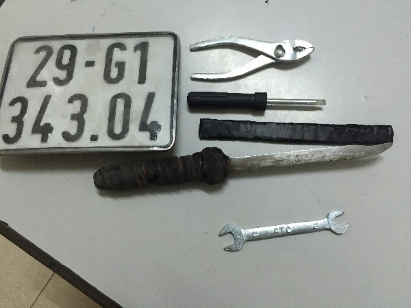 Tại thời điểm kiểm tra, nam thanh niên điều khiển chiếc xe Honda wave màu trắng, không có biển số không xuất trình được giấy tờ xe. Trong cốp xe có một chiếc biển kiểm soát và nhiều vật dụng như dao tự chế, kìm, tuốc nơ vít và cờ lê.