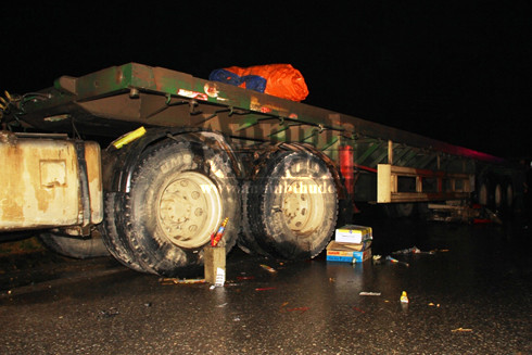 Cùng thời điểm đó, chiếc xe đầu kéo mang BKS: 37V – 2407 kéo theo rơ moóc BKS: 37R – 003.32 lưu thông theo hướng ngược lại lao đến, tài xế không kịp xử lý nên đã cán phải hai người ngồi trên xe máy, gây tử vong.