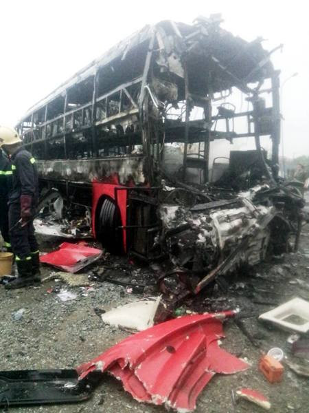 Thông tin ban đầu cho biết, thời điểm này, tại khu vực xảy ra tai nạn trời đang có mưa, hai xe khách giường nằm là xe Phương Trang BKS: 51B-112.24 va chạm với xe khách giường nằm Hà Tĩnh, BKS: 38N-5577. Do va chạm mạnh, khiến cả hai xe bốc cháy dữ dội…