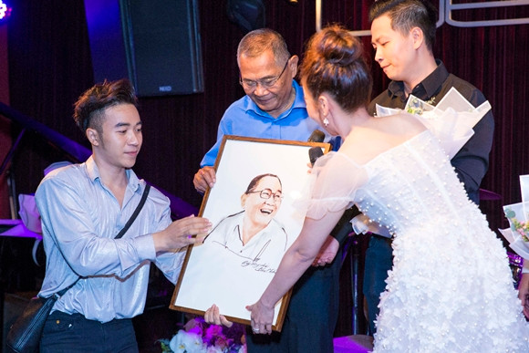 Hải Yến và bức tranh chân dung gửi tặng nhạc sĩ Bảo Chấn