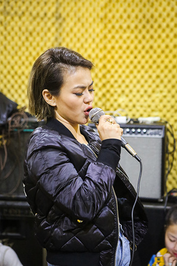 Hải Yến luyện tập cùng ban nhạc