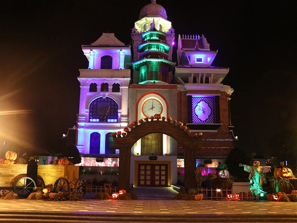 Không gian xung quanh tháp đồng hồ được thắp sáng bởi những “cây lồng đèn bí ngô” & những chiếc xe đẩy bí độc đáo với hàng trăm mô hình bí ngô khắc họa các bộ mặt đa sắc thái, bộ mặt nào cũng ấn tượng, sắc diện nào cũng ngộ nghĩnh. Khi công viên lên đèn, muôn ngàn ánh sáng rực rỡ tỏa ra từ mỗi cây đèn lồng khiến không gian cổ tích thêm sống động, lung linh, kỳ ảo.