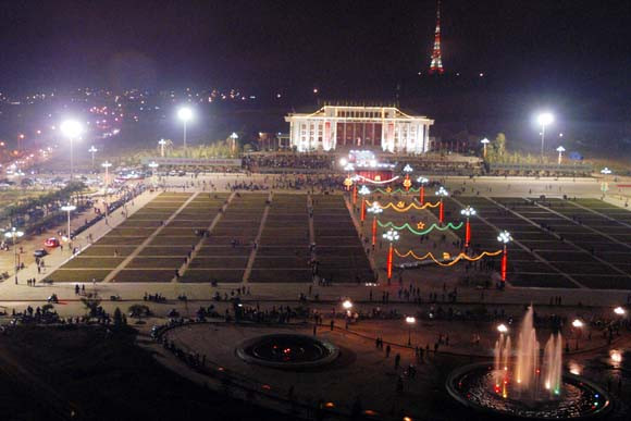Mặc dù có xuất hiện một số hạt mưa xuân, song quảng trường Lam Sơn đã cuốn hút đông đảo bà con bằng màn pháo hoa lung linh sắc màu. Ngay từ trước khi giao thừa đến, sân khấu ánh đèn ngoài trời đã như hối thúc những con tim hướng về thời khắc thiêng liêng chuyển giao. Những bài ca về Đảng, về Bác về đất nước đã cuốn hút dòng người dồn về đây. Tượng đài Lê Thái Đổ, Đại lộ Lê Lợi vỡ òa trong nhịp đồng hồ đếm ngược khi 3 kim đồng hồ chập vào con số 12.
