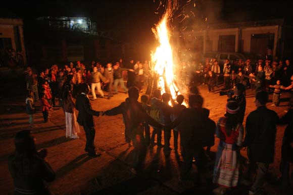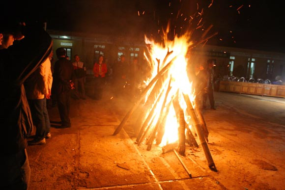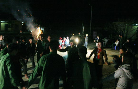 Không khí đón giao thừa tại vùng biên giới Việt- Lào được các chiến sỹ Đồn biên phòng Mường Lạn, huyện Sốp Cộp hân hoan cùng bà con dân bản trong ánh lửa trại bập bùng. Những màn múa xòe cũng được bung nở trong nhịp hát tay trong tay quân với dân ấp áp.
