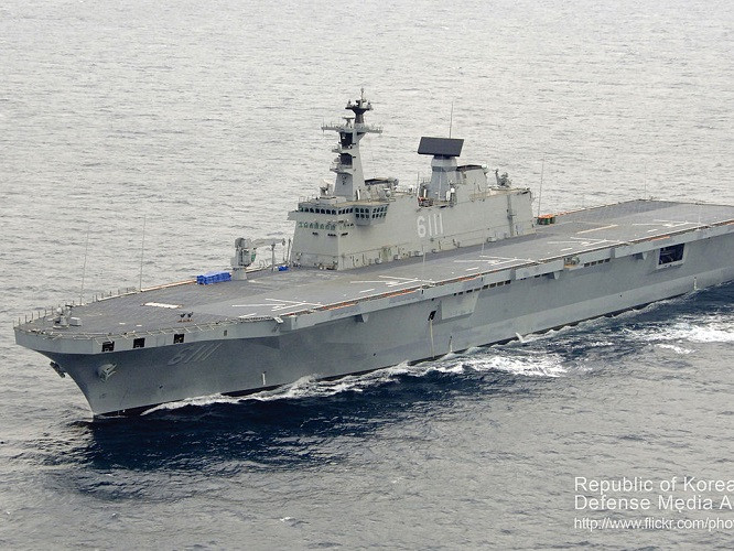ANTD.VN - Vào hôm 14-5, Hàn Quốc đã hạ thủy chiếc tàu tấn công đổ bộ lớp Dokdo thứ 2. Lễ hạ thủy diễn ra ở xưởng đóng tàu của Tập đoàn Hajin tại Busan. Đến dự sự kiện này có sự góp mặt của Bộ trưởng Quốc phòng Hàn Quốc Song Young-moo và Tư lệnh hải quân Um Hyun-seong.
