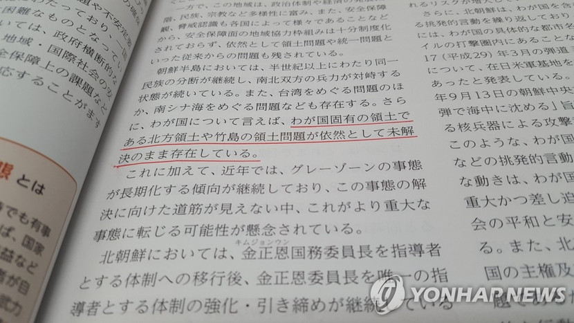 Trong Sách trắng quốc phòng 2018 công bố ngày 27-8, Nhật Bản nhắc lại chủ quyền đối với hai hòn đảo này là "phần cố hữu thuộc lãnh thổ Nhật Bản" và vấn đề tranh chấp lãnh thổ "vẫn chưa được giải quyết".