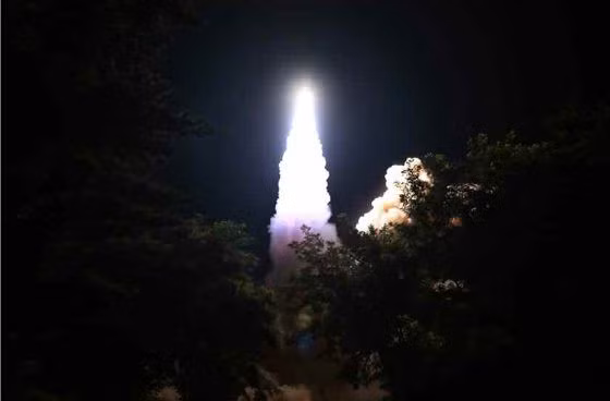 Một quả đạn pháo phản lực được Triều Tiên phóng thử hôm 31-7 (Ảnh KCNA)