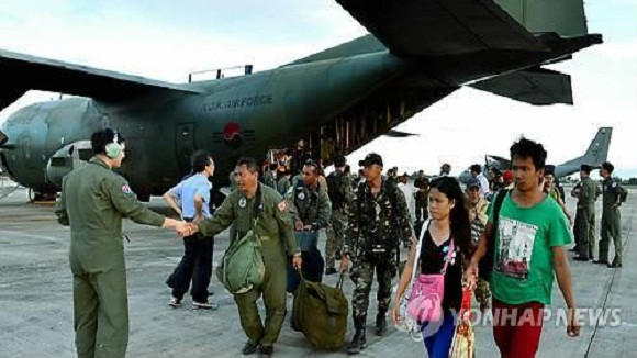 Tuần trước, Hàn Quốc đã cử 46 nhân viên cứu trợ cùng 2 chiếc máy bay vận tải quân sự C-130 đến Tacloban để hỗ trợ về y tế và vận tải.