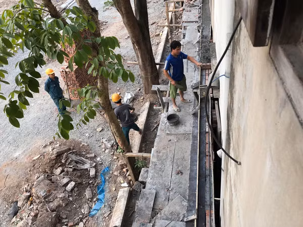 Khi bức tường này được xây xong, cư dân khu tập thế Ký túc xá Thượng Đình sẽ không còn ánh sáng