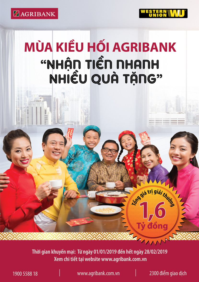 Thời điểm những tháng cuối năm, lượng kiều hối chuyển về Việt Nam thường tăng mạnh do kiều bào tập trung gửi tiền về nước nhân dịp năm mới cho người thân sắm Tết. Đó cũng là lý do để Agribank kết hợp với Western Union tổ chức chương trình khuyến mại “Mùa kiều hối Agribank, Nhận tiền nhanh - Nhiều quà tặng” hàng năm nhằm tri ân và thu hút thêm nhiều khách hàng mới đến giao dịch tại ngân hàng, đồng thời tạo điều kiện thuận lợi cho khách hàng sử dụng dịch vụ chuyển/nhận tiền nhanh chóng, an toàn, tiện ích.