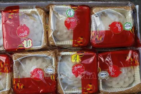 Lô bánh Trung thu "4 không" tại Quận 8, thành phố Hồ Chí Minh (Ảnh: TTXVN)