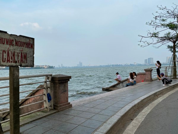 Người dân chụp ảnh, câu cá sát mép hồ Tây (Hà Nội)