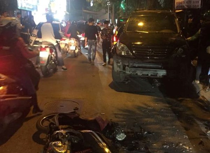 Như báo ANTĐ đã đưa tin, tối ngày 18-12, tại đường Trích Sài đã xảy ra vụ TNGT liên hoàn nghiêm trọng khiến ít nhất 6 người phải nhập viện. Điều khiển chiếc Lexus là 1 phụ nữ, khi đi qua số nhà 81 đường Trích Sài đã bất ngờ đâm vào 4 xe máy và 1 xe ô tô biển xanh đi cùng chiều.