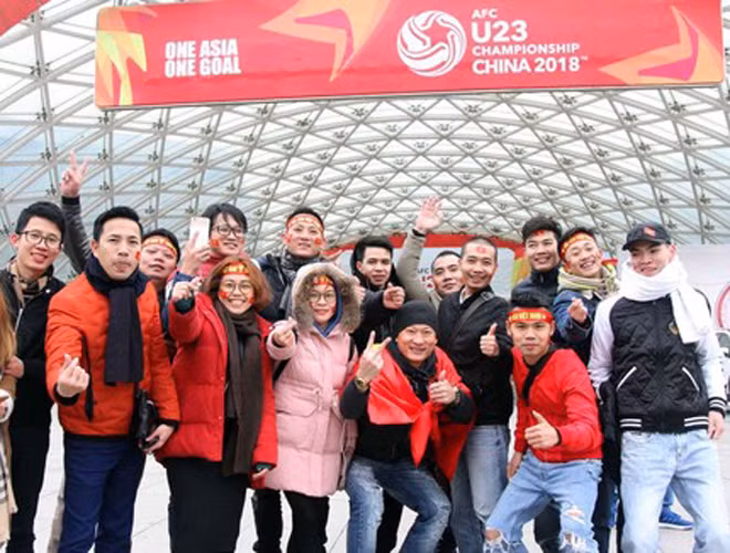 ANTD.VN - Hàng ngàn người Việt Nam di chuyển bằng đường hàng không lẫn đường bộ, đã và đang hướng tới sân vận động Thường Châu (Giang Tô, Trung Quốc), sẵn sàng tiếp lửa cho thầy trò HLV Park Hang-seo trong trận chung kết gặp Uzbekistan chiều nay (27-1).