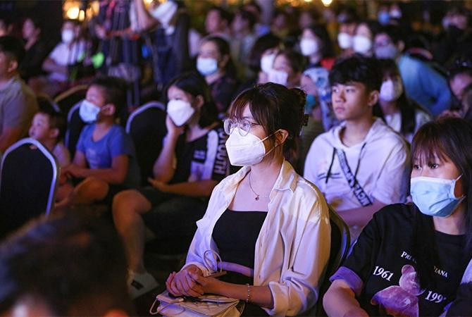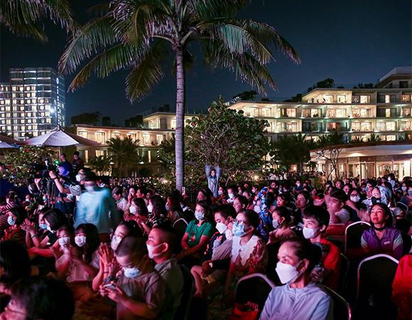 Ngay từ 19h, hàng nghìn khán giả đã di chuyển về khu vực bể bơi nước mặn của FLC Sầm Sơn để chuẩn bị thưởng thức các giai điệu thăng hoa trong đêm nhạc “Hương sắc mùa hè”.