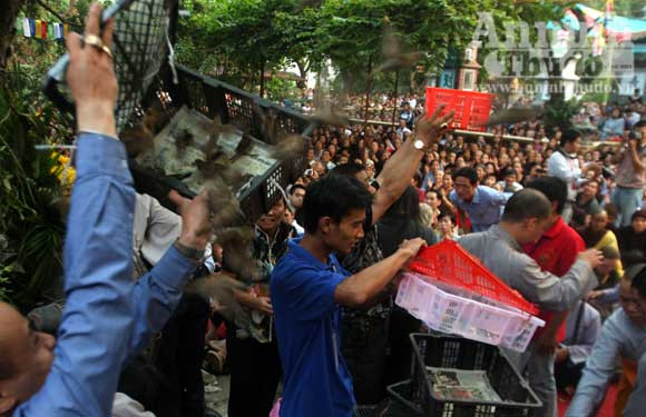Người dân thả chim phóng sinh cầu hòa bình cho con người