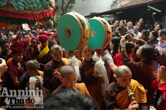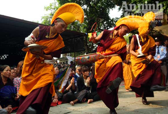 ...và phật tử vừa chiêm bái điệu múa đồng thời cầu Quốc thái dân an