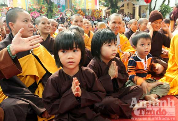 Phật tử "nhí" cùng tham gia cầu nguyện Quốc thái dân an