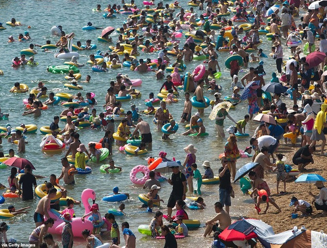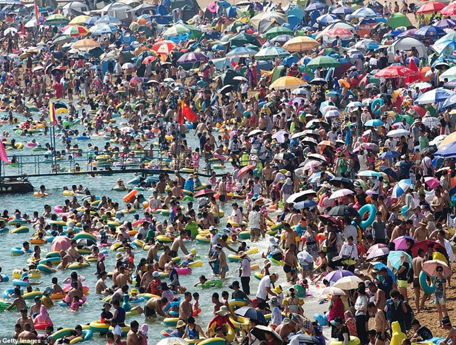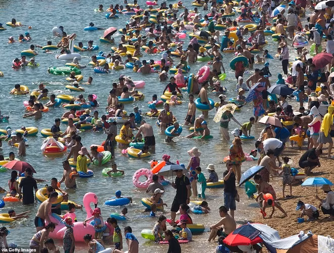 ANTD.VN - Dịp nắng nóng cuối tuần qua ở Trung Quốc khiến nhiều khu vực nước này có nhiệt độ chạm ngưỡng trên dưới 40 độ C. Hàng chục nghìn người dân Trung Quốc kéo đến các bể bơi công cộng, bãi biển để tắm mát giải nhiệt, tạo nên cảnh tượng vô cùng vô cùng choáng ngợp như "một nồi bánh bao sôi" khổng lồ.