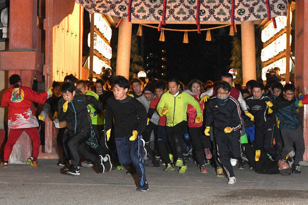 Khoảng 5.000 người chờ bên ngoài đền ngay từ trước bình minh. Đúng 6h sáng, khi tiếng trống điểm và cổng đền mở ra, những người tham gia chạy nhanh về phía chính điện, qua quãng đường dài khoảng 230m, để trở thành “người may mắn nhất” đầu tiên trong thời đại Lệnh Hòa.