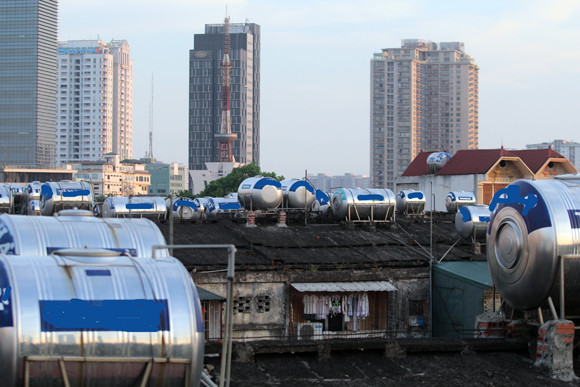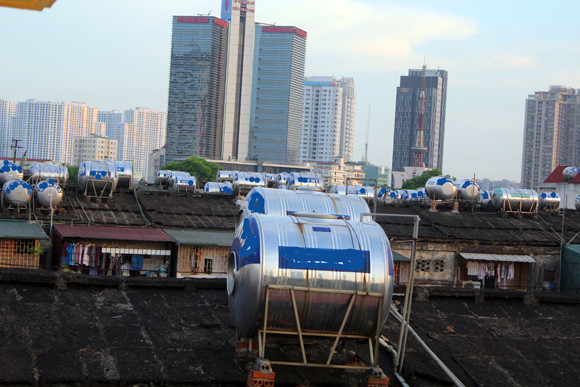 Chùm ảnh về những "quả bom" nước trên nóc những khu chung cư cũ.