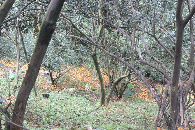 Hai huyện Bắc Quang và Quang Bình của tỉnh Hà Giang đã bị rụng khoảng 10.000 tấn cam (ảnh Giang Hiệp)