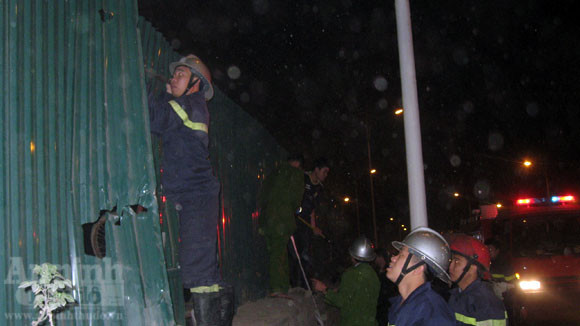 Để tiếp cận hiện trường, cảnh sát PCCC đã vất vả phá dỡ các "bức tường" tôn ngăn cách