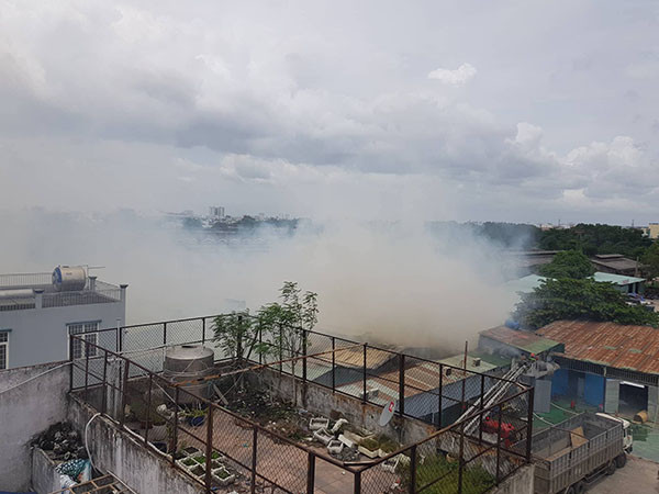 Một số người dùng bình chữa cháy mini ứng cứu nhưng không thành. Nhận tin báo, hàng trăm người thuộc nhiều đơn vị Công an, Cảnh sát PCCC của quận Tân Phú, các quận huyện xung quanh và của TP.HCM đã có mặt phong tỏa hiện trường để xử lý.