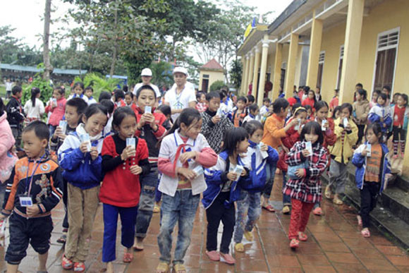 Hàng nghìn em học sinh mẫu giáo và tiểu học đã được nhận sữa, mỗi bé 3 đến 5 hộp