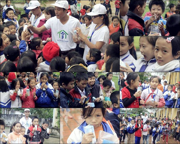 Thành Trung chia sẻ, cả nhóm vô cùng hạnh phúc khi nhìn thấy nụ cười nở trên môi các em nhỏ.