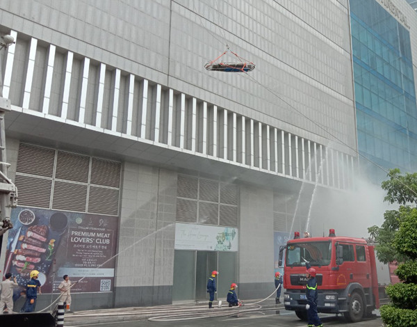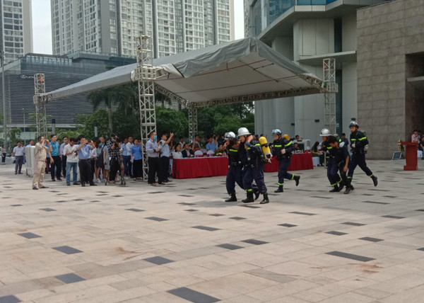 Hàng trăm nhân viên, cư dân tham gia diễn tập vụ cháy giả định
