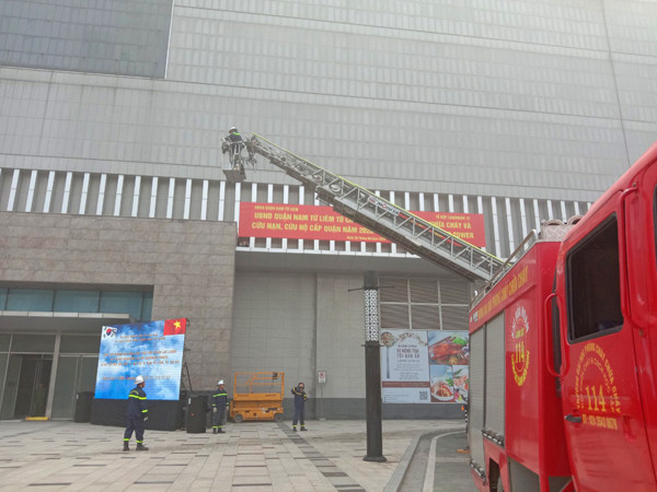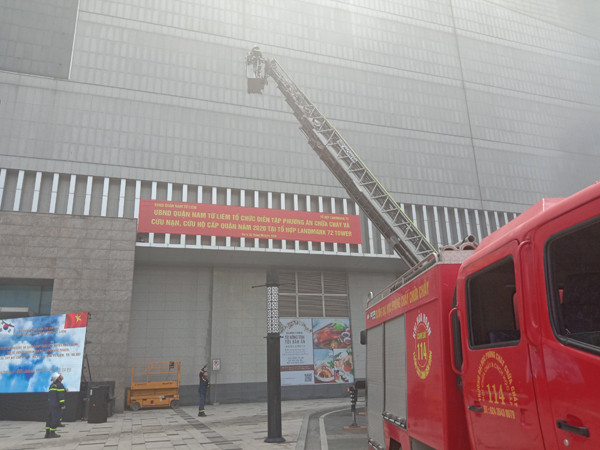 ANTD.VN - Lực lượng Cảnh sát PCCC và CNCH - Công an quận Nam Từ Liêm đã tổ chức diễn tập PCCC và CNCH huy động nhiều lực lượng tại tổ hợp của tòa nhà Keangnam Hà Nội Landmark Tower.