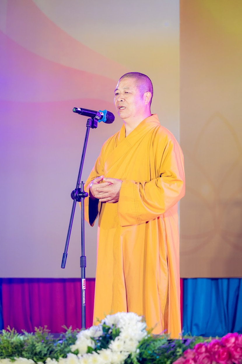 Hoà thượng Thích Thọ Lạc, Uỷ viên TT Hội đồng Trị sự - Trưởng Ban Văn hoá Trung ương - Giáo hội Phật giáo Việt Nam phát biểu mở màn chương trình văn nghệ "Sáng đạo trong đời"