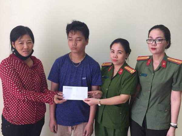 Ngay sau khi được CBCS chăm sóc, cho ăn uống, nam thanh niên đã bớt mệt và tỉnh tảo dần trở lại. Lúc này Thiếu tá Mai Văn Minh - Cán bộ trực ban của CAH ân cần động viên và biết được số điện thoại của người thân.