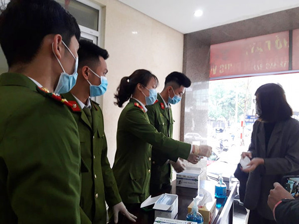 Để phòng ngừa lây lan dịch bệnh do virus corona gây ra, Đoàn thanh niên các đơn vị Phòng Quản lý Xuất Nhập cảnh, Phòng An ninh kinh tế, Phòng Cảnh sát bảo vệ thuộc Công an thành phố Hà Nội đã tổ chức tuyên truyền, phát khẩu trang y tế miễn phí, hướng dẫn cho người dân rửa tay khi đến liên hệ làm việc.