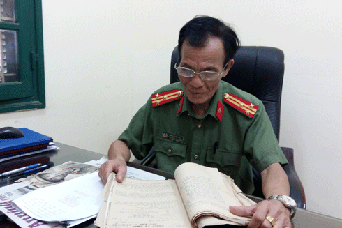 Thượng tá Trần Xuân Kiệu đọc lại các tư liệu về người cha liệt sĩ của mình