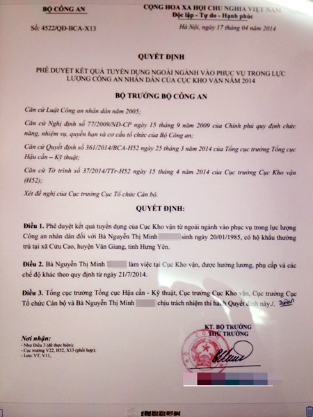 Quyết định tuyển dụng giả mang tên chị Nguyễn Thị Minh N.