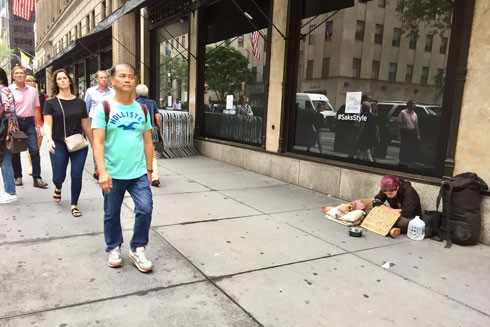 Người vô gia cư, ăn xin trên Đại lộ Danh vọng và trên đường phố New York