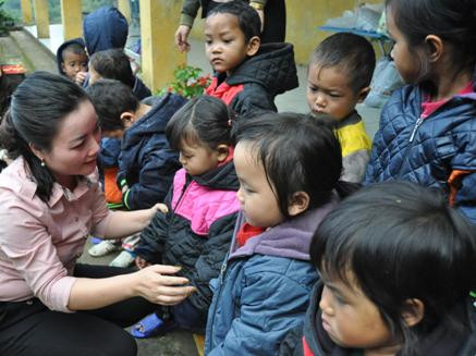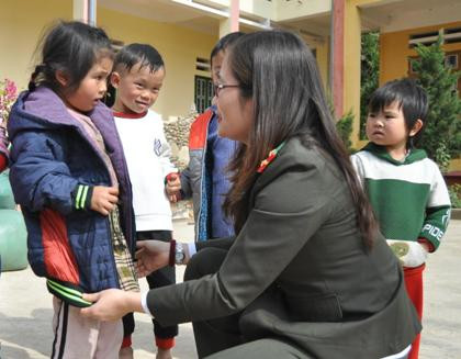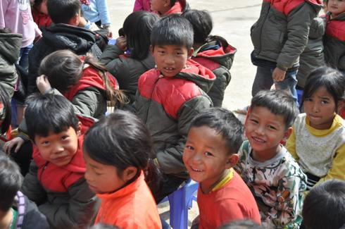 Vừa tới nơi, nhìn những nụ cười rạng rỡ trên khuôn mặt lấm lem đang đỏ lên vì lạnh của các em học sinh vùng cao, sự vui mừng của các thầy cô giáo đã khiến các thành viên trong đoàn quên đi mệt mỏi.