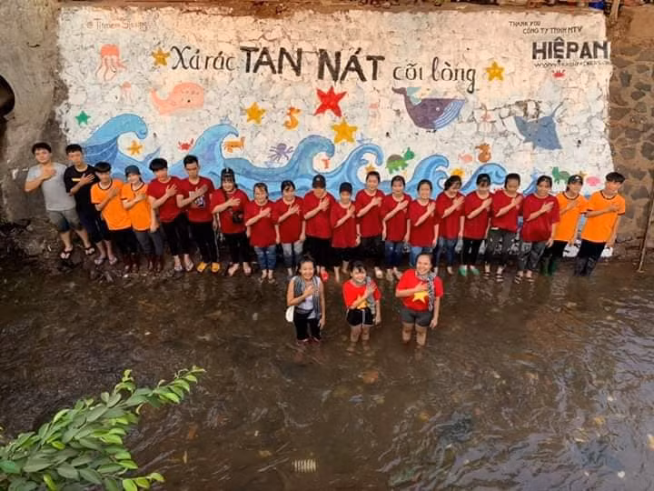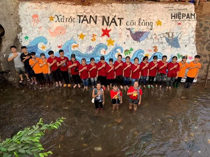 Các bạn nhỏ ở TP.HCM tham gia dọn rác trên kênh (Ảnh: Hoàng Hoa Thám)