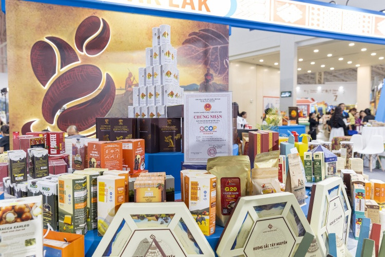 Tại gian hàng Tuyên Quang, trà Shan Tuyết (OCOP 5 sao) và cam sành Hàm Yên (có chỉ dẫn địa lý) được trưng bày trang trọng. Còn ở gian hàng Đắk Lắk, cà phê chồn Kiên Cường và Socola MISS EDE là minh chứng rõ nét cho chuẩn OCOP 5 sao - như “tem bảo hành” cho chất lượng cao nhất, không thua kém bất kỳ sản phẩm quốc tế nào.