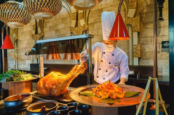 Nhà hàng được thiết kế theo phong cách truyền thống, vẻ đẹp thanh lịch, gần gũi với những món ăn được bài trí đẹp mắt mang tới cảm giác thoải mái và trải nghiệm thú vị cho thực khách.