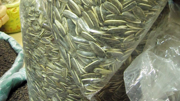 Chợ Đồng Xuân, Hà Nội bấy lâu là chợ đầu mối lớn nhất khu vực miền Bắc với đủ các mặt hàng từ trong nước đến nhập khẩu. Tại đây khách hàng dễ dàng mua được hạt hướng dương không nhãn mác, không nguồn gốc với số lượng không hạn chế, chỉ cần có nhu cầu. Chị Mùi, một tiểu thương buôn bán mặt hàng bánh mứt kẹo cho biết, phần lớn hạt hướng dương bán tại chợ Đồng Xuân có nguồn gốc từ Trung Quốc. Cũng theo chị Mùi, hướng dương có nhiều loại, nhưng loại chị bán chạy nhất vẫn là loại hạt vỏ màu đen được bán với giá rất rẻ, từ 30.000-50.000 đồng/kg, tùy loại.