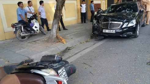 Vào khoảng 15h30 phút chiều 16-11, chiếc xe Mercedes BKS 30E-105.80 đang lưu thông trên đường Cao Bá Quát, phường Điện Biên, quận Ba Đình, Hà Nội bất ngờ mất lái đâm thẳng vào 2 xe máy đang lưu thông trên đường. Cú đâm rất mạnh đã hất văng 4 người ngồi trên xe máy xuống đường khiến các nạn nhân bị thương nặng. Chưa dừng lại, chiếc xe ô tô tiếp tục chồm lên vỉa hè, cắm đầu vào gốc cây ven đường. Lúc này, chiếc xe mới dừng lại.