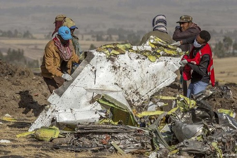 Hiện trường vụ rơi máy bay của hãng hàng không Ethiopian Airlines – Nguồn: DW