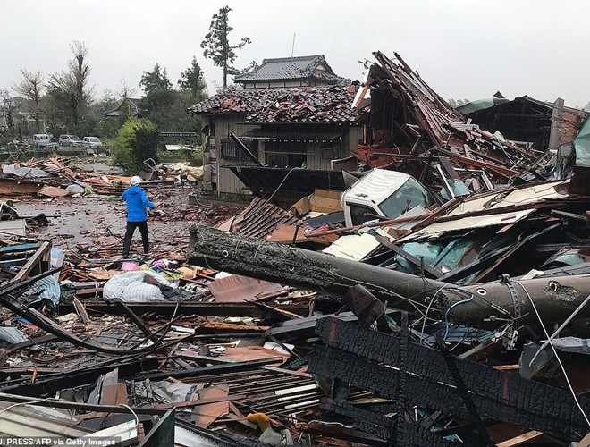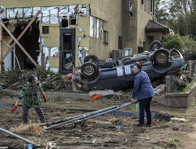 ANTD.VN - Ít nhất 35 người thiệt mạng, trong đó có một cụ bà 77 tuổi rơi từ trực thăng cứu hộ và 17 người khác mất tích, gần 400.000 ngôi nhà mất điện, hơn 14.000 người không có nước sinh hoạt, sau khi siêu bão Habigis đổ bộ vào Nhật Bản từ tối 12-10-2019.